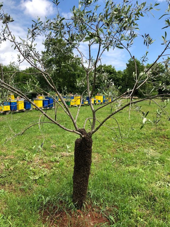 Nakon što stara matica napusti košnicu, formira roj s grupom radilica na nekom obližnjem mjestu, poput grane drveta ili krova zgrade. Ovaj privremeni roj obično se zadržava na istom mjestu nekoliko sati ili dana dok izviđačice istražuju potencijalna nova staništa. Kad pronađu odgovarajuće mjesto, poput šupljeg drveta, zidne šupljine ili čak nove košnice, roj se premješta i započinje novu zajednicu.